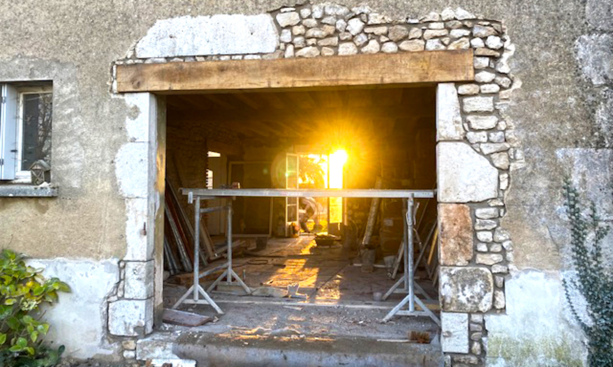 Restauration de bâtiments anciens, réfection de l’existant, enduits traditionnels à la chaux, murs pierre et briques, création d’ouvertures, dalles de chaux…