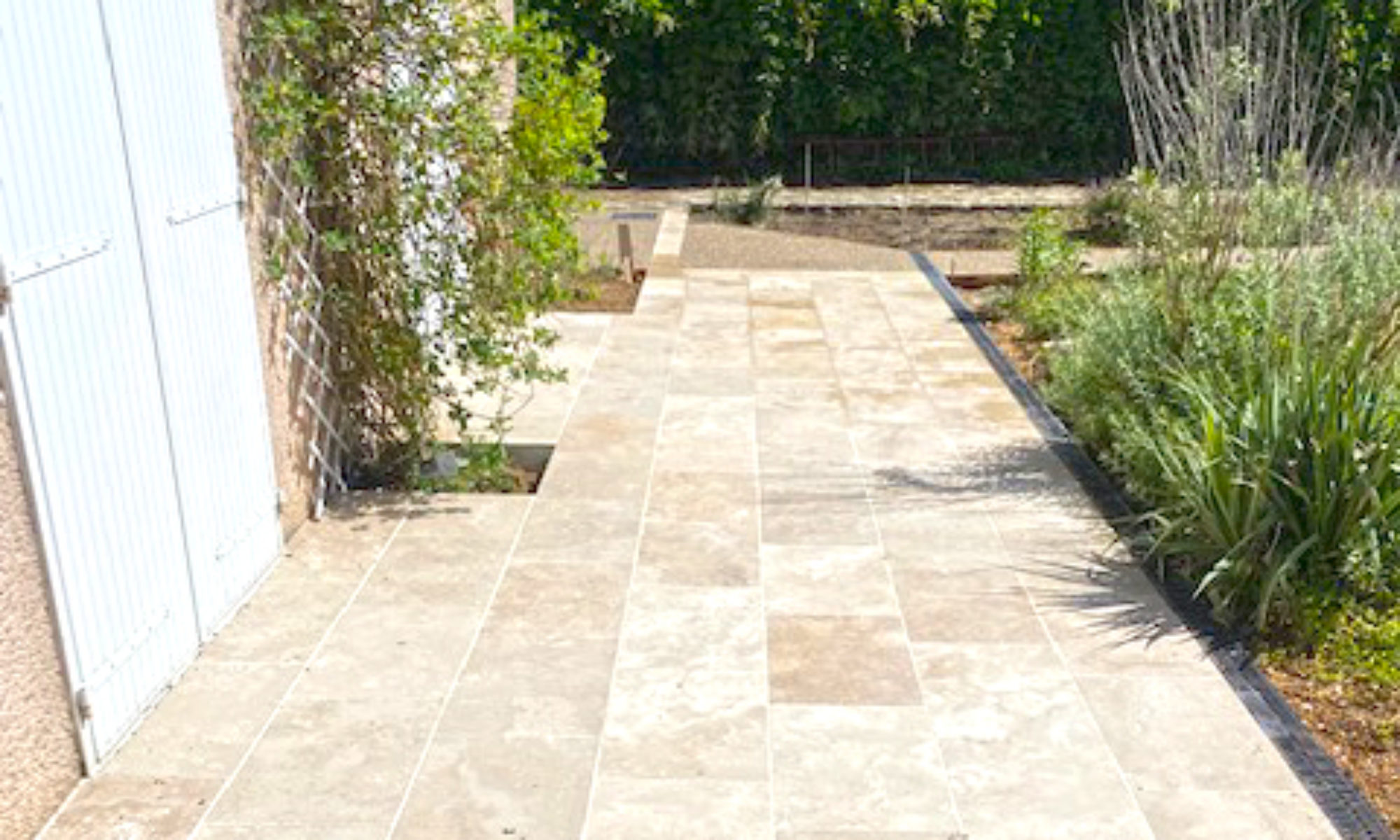 Travaux extérieurs de maçonnerie. Terrasses pierre, dallages béton désactivé, cours gravier, allées. Portails, clôtures, vérandas, piscines…